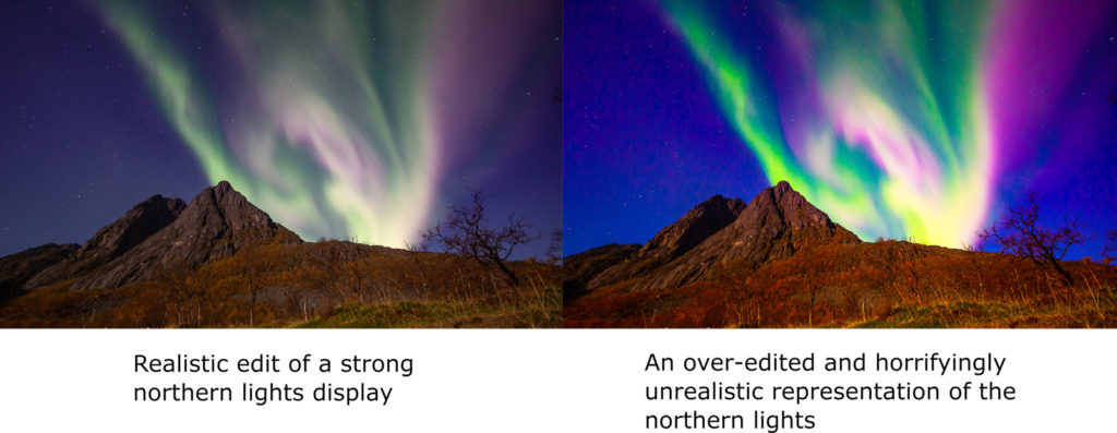 - Overexposing bright auroras