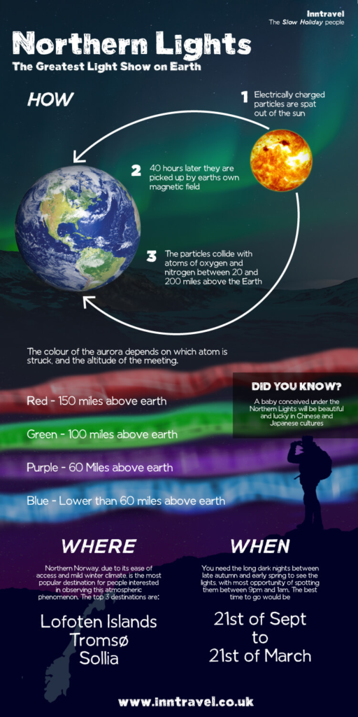 • Green auroras occur lower in the atmosphere