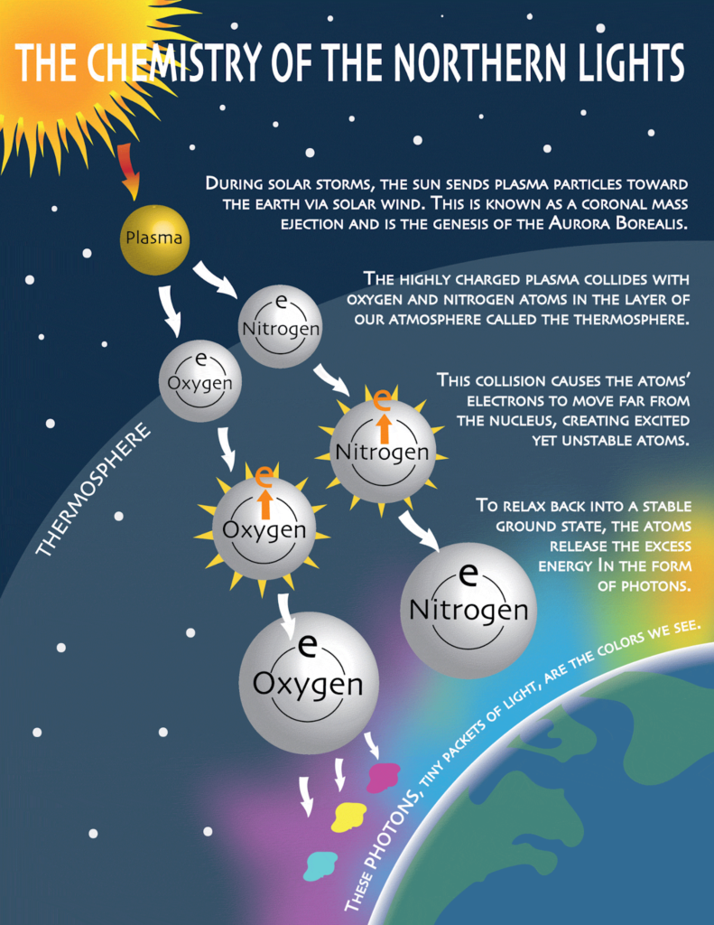 In simple terms, auroras are electric reactions written in chemistry and displayed as color.